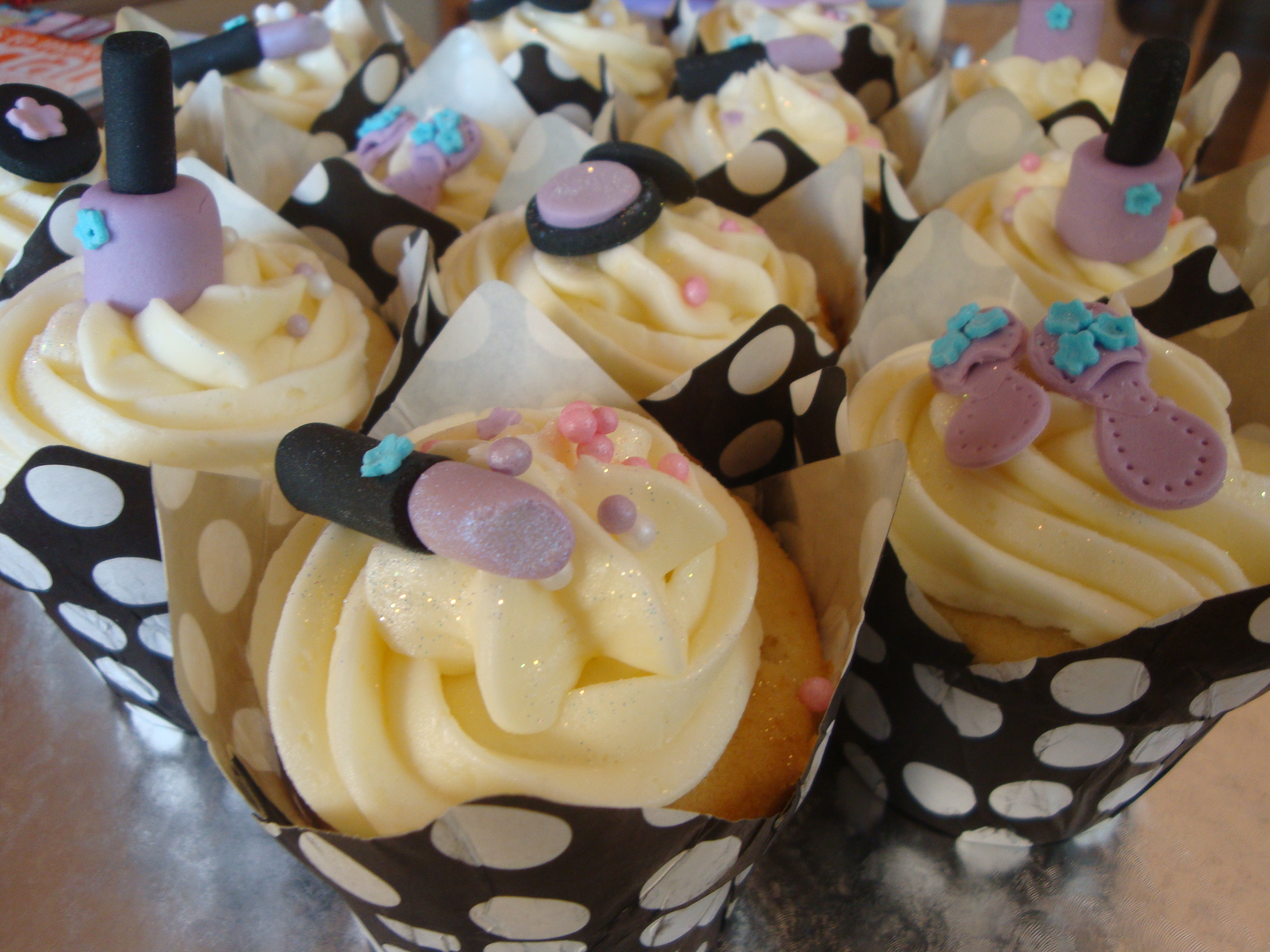 These cupcakes were specially made for a Sweet Sixteen pamper birthday party. It was a new challenge to do something this ‘girly’ and make them funky at the same time so I made lipsticks, eyeshadows, perfume bottles, nail polishes & slippers in funky girly blues and purples. All the decorations were made out of sugar paste and I added a sheen finish to the lipsticks and eyeshadows. As usual I had fun making these cupcakes and loved how the decorations turned out.
