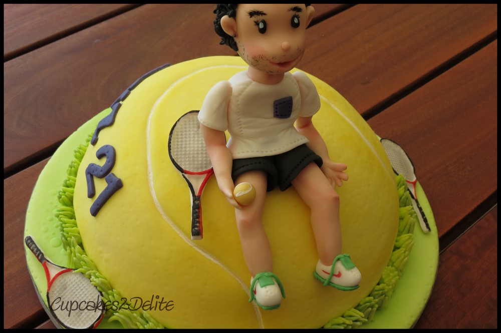 It has been an exciting year for 21st birthdays and Byron’s Tennis Cake was a 21st birthday cake I created earlier this year for his celebration with his family. I have know Byron for a few years now and it was great to be able to make a small sugar figurine and try and capture some of his characteristics. Of course the easy ones were his dark good looks, thick curly dark hair and 5 O’Clock shadow typical of all students these days! Wendy, his mom, asked me to do a tennis themed cake as this is one of Byron’s incredible talents and passions in life. I placed the Byron sugar figurine sitting on a delicious chocolate tennis ball cake which I covered in a mix of fondant and modelling chocolate and embossed to create a tennis ball texture. I also created the line and then painted it with white edible paint and added small moulded tennis racquets and grass to finish off the cake. It was such fun making this cake Byron and congratulations on your 21st birthday and you can be proud of how you have taken your talents and passions into your varsity life and continued to be an inspiration to and admired by all those who meet you.