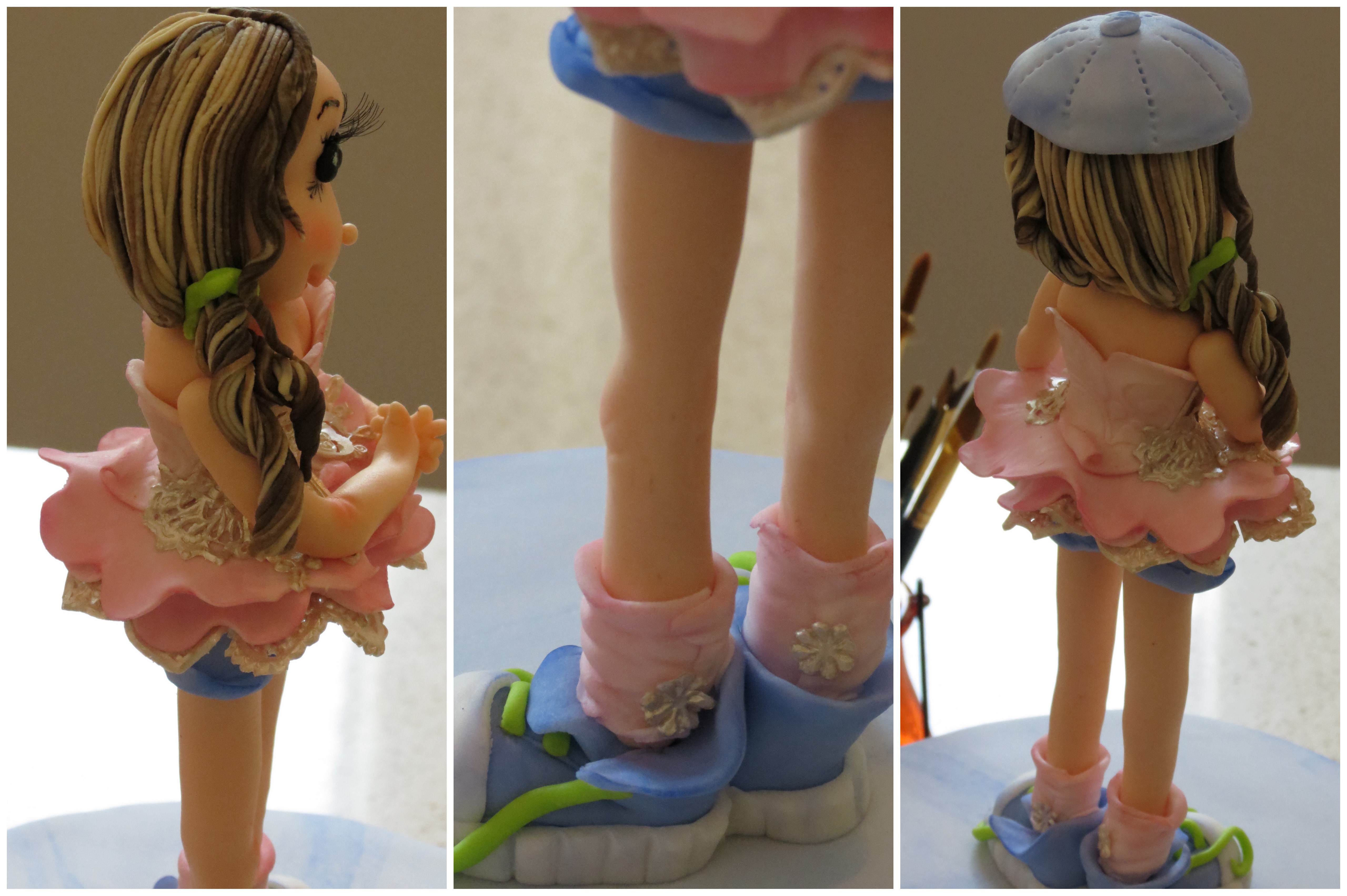 The petite really cute baby I gave birth to 16 years ago turns Sweet 16 today! Congratulations Ceire and thank you for 16 years of fun, laughter and joy with you! I love the zest for life and quirky craziness you bring into our lives every day. Wishing you the best day ever and enjoy being totally spoilt with all your pressies and your Ballet Rocks Denim cake! This figurine was inspired by your lovely long legs and the ballet part is a thank you to you for all the hours you spent dancing and giving us such joy with youir grace and beauty on stage. The denim is inspired by your love for denim jeans and shorts (hence the denim shorts cake with the added lace you love) and your funky swagger in everything denim, you know how to rock whatever you are wearing and we love you for it. Not sure if these shoes are quite as awesome as your new Nikes and Converse shoes but couldn’t resist adding them for some fun to your figurine and of course the laces are not done up in memory of all the times you insisted on not tying your laces on your shoes!!! Yes I remember! I hope I captured everything beautiful about you from your legs to your hair to your pretty face and most of all I hope I captured your zany character and zest for life!