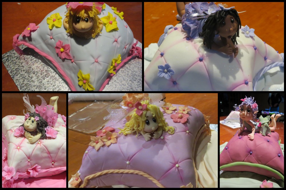 Once again Grace taught us one of her beautiful cake designs and allowed us to express ourselves and bring out the character in our individual fairies. Here they are below with their cute but naughty faces happily resting without a care in the world on their cushions.