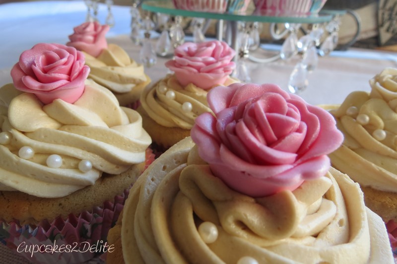 On a Monday morning previous to making these cupcakes I had taken a trip into Parkhurst, a place close to my heart for so many reasons and the latest being In Good Company’s move to this quaint suburb. Walking into their shop is just the perfect delight for any shopper and entertainer as their attention to detail in their displays and the quality of their products is superb. With Jan in mind, I was drawn to these pretty Meri Meri cupcake cases with their pretty striped and flower detail and I Love Cupcake font and to another new product the Meri Meri Cupcake Gift Boxes. The gift boxes hold 4 cupcakes each and are shaped as a little roofed cottage with a window through which you can view the cupcakes. The cupcake gods certainly had me in mind as these beautiful purchases became the colour inspiration for Jan’s cupcakes. In Good Company also had the perfect gift for Jan in the form of a garden trowel and fork covered in a delicate rose design. Their unusual array of ribbons kept me a while longer as I chose the perfect one for wrapping Jan’s present which you will see here in the photo belo
